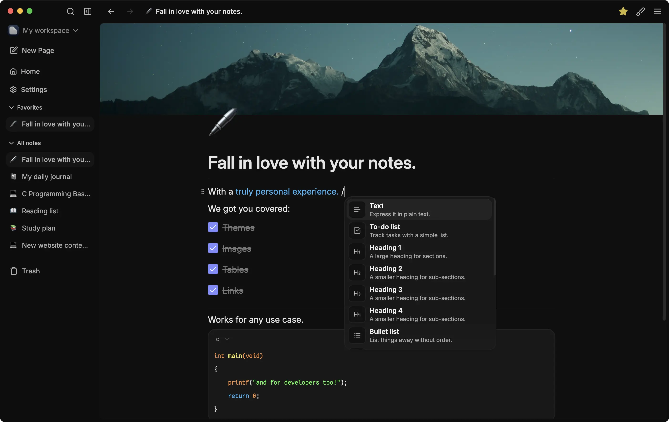A powerful editor to satisfy a variety of use cases, from to-do lists to